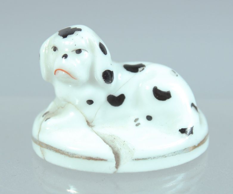 A MINIATURE PAIR OF STAFFORDSHIRE PORCELAIN DOGS.