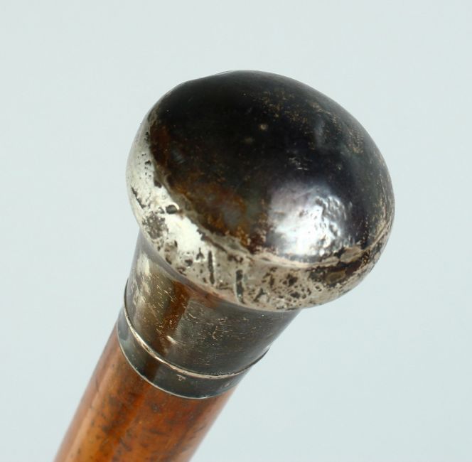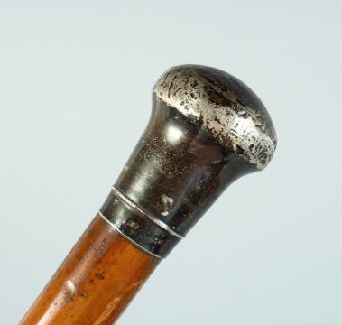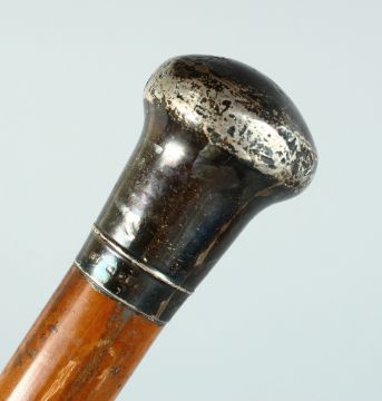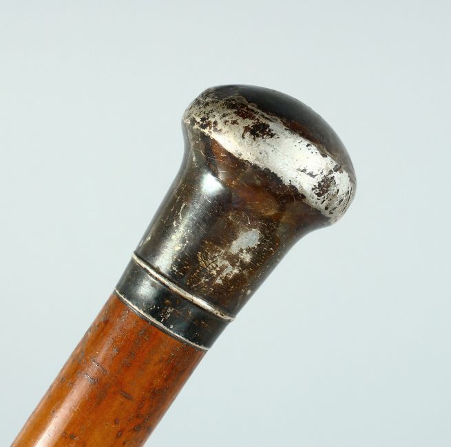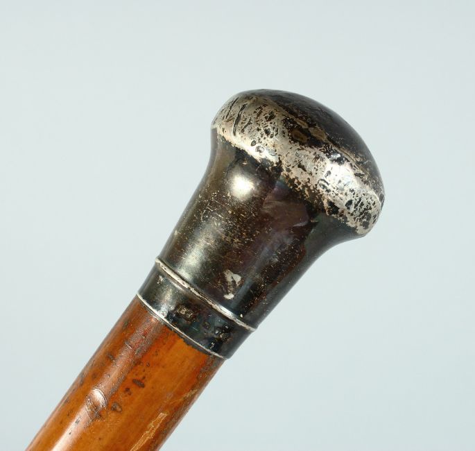 AN EDWARD VII CANE with plain silver handle.