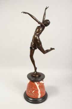 A BRONZE DANCER on a marble base.