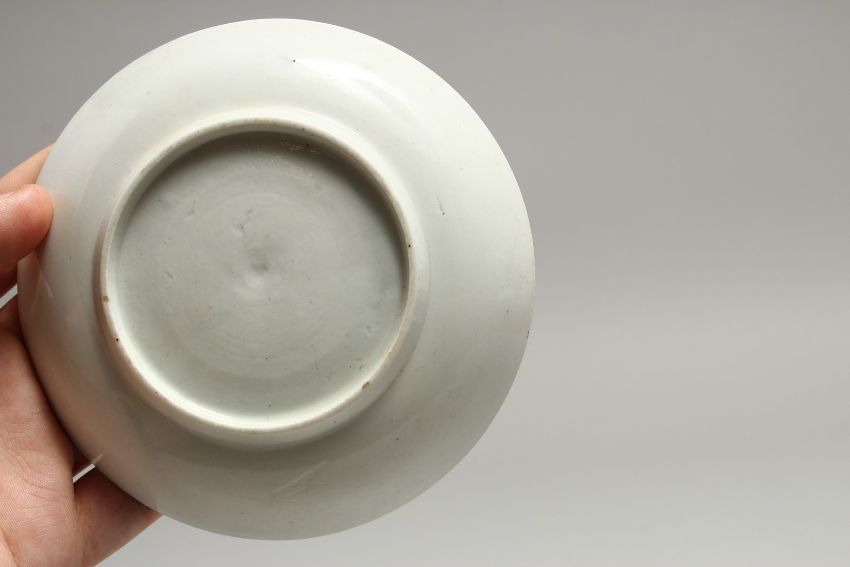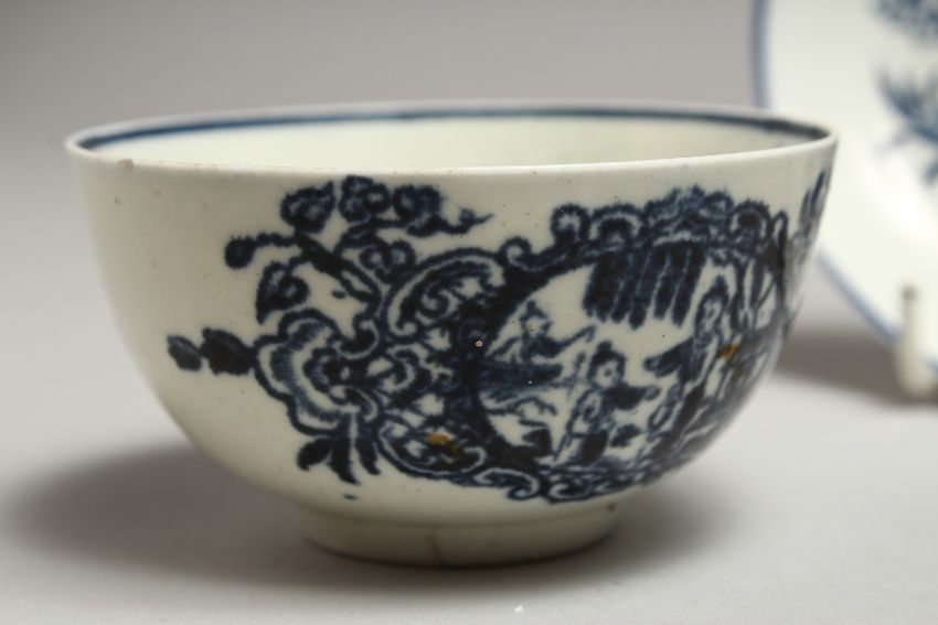 A CHRISTIAN'S LIVERPOOL TEA BOWL AND SAUCER with the mother, Child and man fishing.