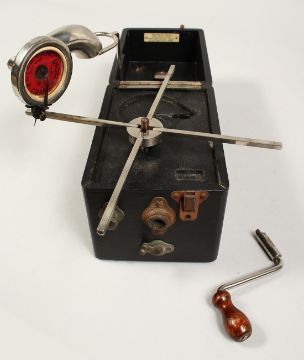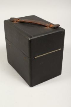 A RARE PETER PAN PORTABLE GRAMOPHONE in a leather case.
