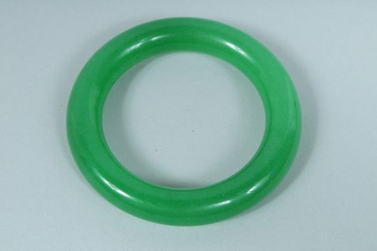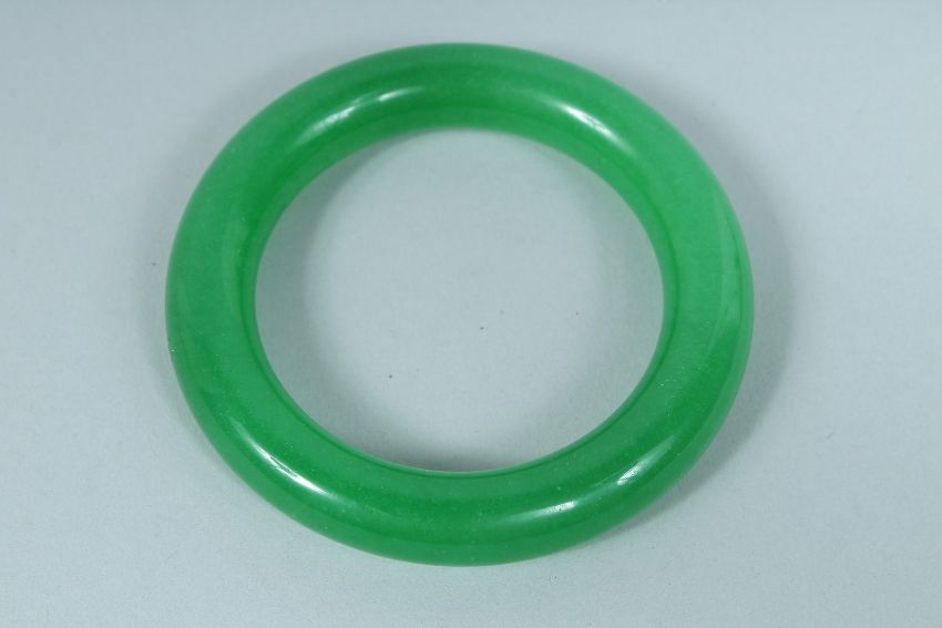 AN APPLE JADE CARVED BANGLE.