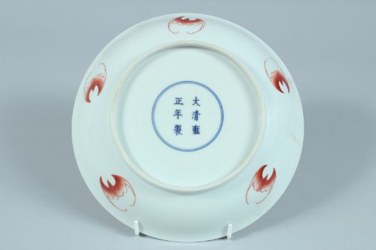 A CHINESE FAMILLE JAUNE CIRCULAR DISH decorated with dragons.