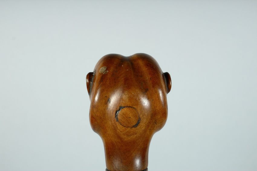 A GOOD RUSTIC CANE with carved Bull dog handle.