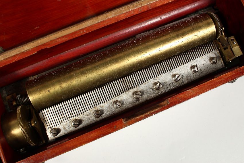 A 19TH CENTURY FRENCH ROSEWOOD CASED MUSICAL BOX, the top with musical trophies.