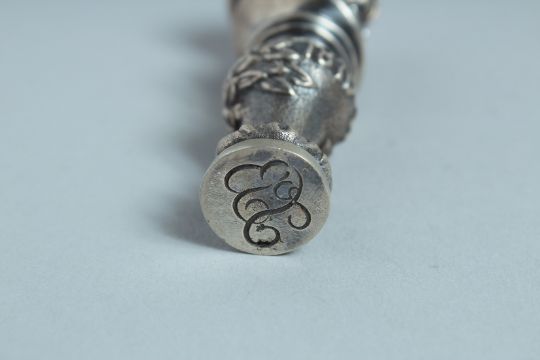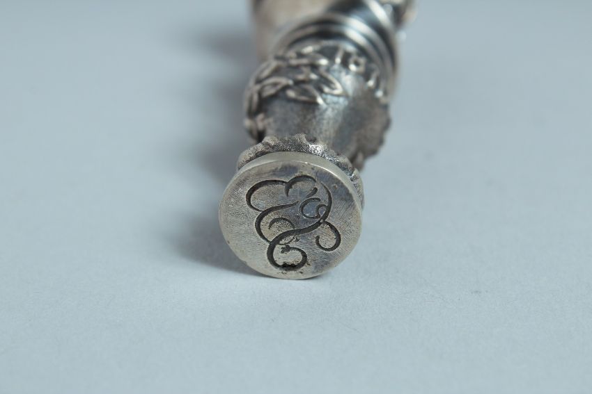 A RUSSIAN SILVER DESK SEAL a man's head, dated 1810 - 11.