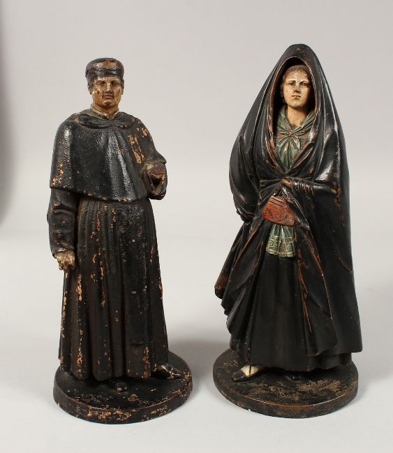A RARE PAIR OF 19TH CENTURY PORTUGUESE FIGURES OF A MAN AND A WOMAN.