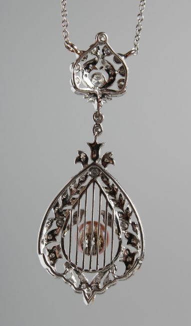 A GOOD 18CT WHITE GOLD AND DIAMOND PENDANT AND CHAIN.