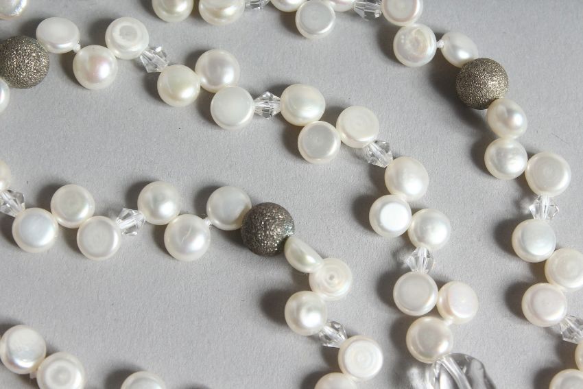 A PEARL AND CRYSTAL BEAD NECKLACE.