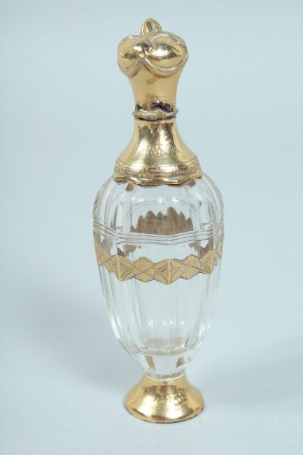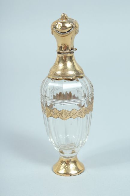 A GEORGIAN GOLD MOUNTED SCENT BOTTLE in a leather case.