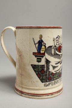 A LEEDS CREAMWARE POTTERY SLAVERY MUG, from a design by James Gillray, French Liberty, British Slaves (1792).