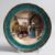 A SUPERB 19TH CENTURY VIENNA ENAMEL PLATE painted with an interior scene, a young lady serving a man as he sits in front of her.