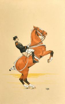 20th Century French School, a pair of Cavalrymen on preforming horses, watercolours, indistinctly signed, each, 19.75" x 12.5" (50 x 32cm), (2).