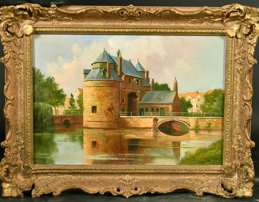 19th Century French School, A view of a town by river, oil on panel, 9.25" x 13".