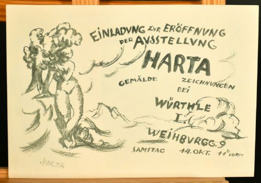 Felix Albrecht Harta, Lithograph, an invitation to an exhibition, signed in pencil, 5.5 x 8", (14 x 20cm), (unframed).