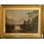A 19th Century classical landscape with figures by a lake and ruins, oil on board,15.75" x 22", (a/f).
