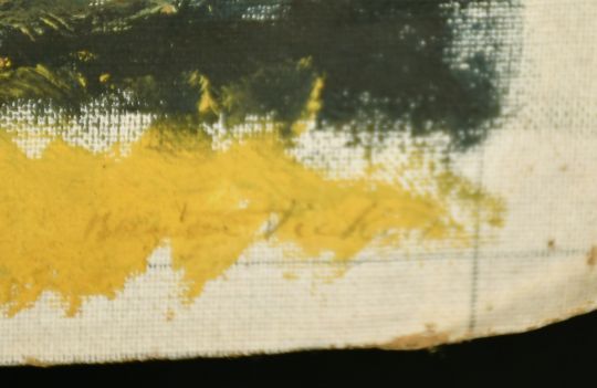 Bernard Sickert (1862-1932) an oil sketch of 'Railway Arches' in a summer landscape, signed, unstretched and unframed, 12.5" x 20".