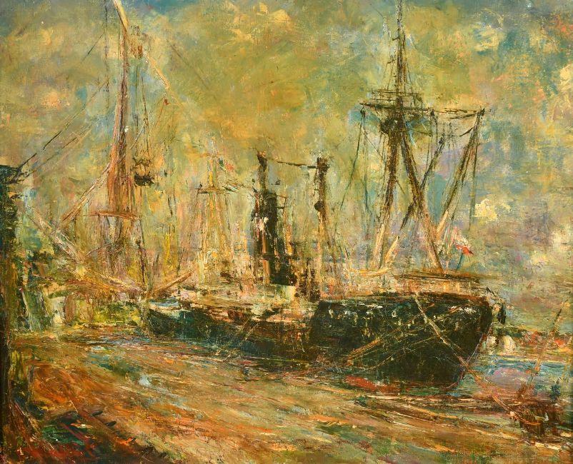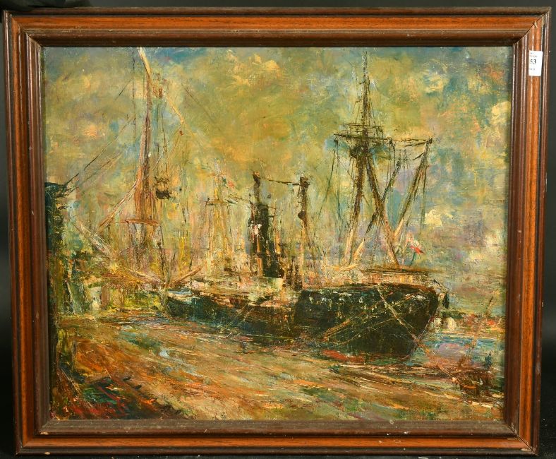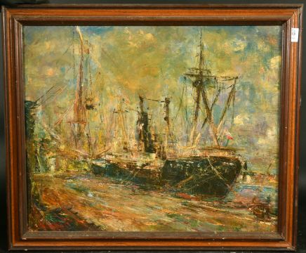 20th Century French School, boats in a harbour, oil on canvas, indistinctly signed, 19.75" x 24" (50 x 61cm).