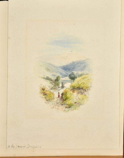 19th Century English School, 'On the Derwent, Derbyshire', watercolour, inscribed, oval, 4" x 3" together with another watercolour of Derbyshire by another hand, 4" x 5.5", (unframed) (2).