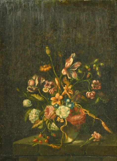 19th Century French School, a still life of mixed flowers, oil on board, 13" x 10" (33 x 25cm).