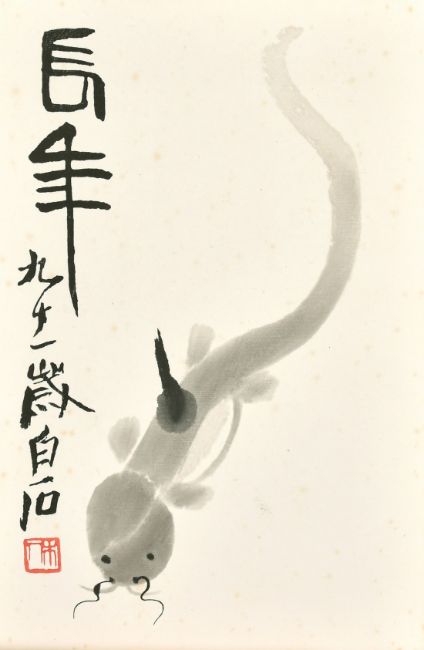 After Qi Baishi, A woodblock print of a fish, 11" x 7.25", (28 x 18.5cm), (unframed).