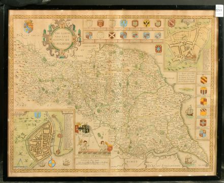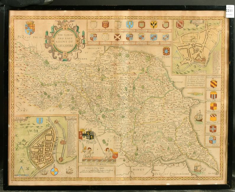 John Speede, 'The North and East Ridins of Yorkshire', hand coloured map, 16" x 21" (41 x 53cm).