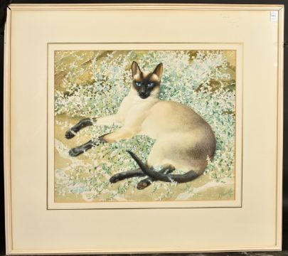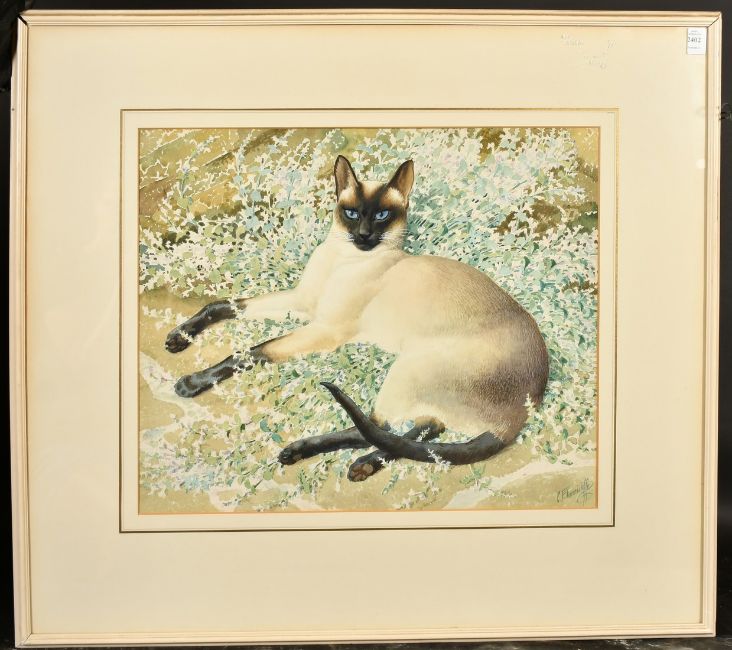 Charles Frederick Tunnicliffe (1901-1979) British, a Siamese Cat resting amongst foliage, watercolour, signed, 18" x 21".