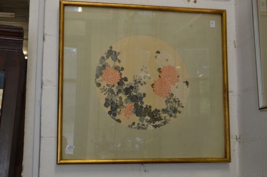 Japanese School, flowers and foliage, circular painting, framed and glazed.