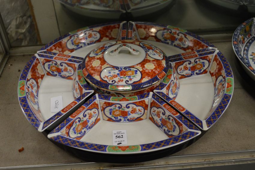 An Oriental porcelain lazy susan/ hors d'oeuvres set.