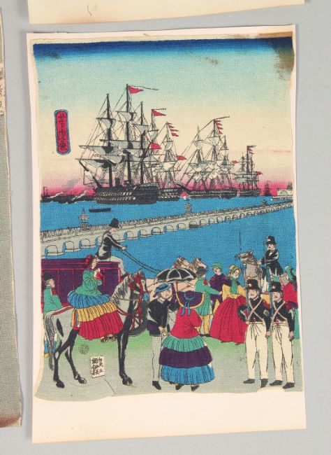 FOUR JAPANESE CREPE PAPER WOODBLOCK PRINTS, together with a small booklet; 'Kobutori', (5).