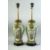 A PAIR OF CHINESE CANTON FAMILLE ROSE PORCELAIN LAMP VASES, painted with panels of figures as well as birds, butterflies and native flora, with moulded ring handles, each mounted to a hardwood base and with brass lamp fitting, overall 62cm high.