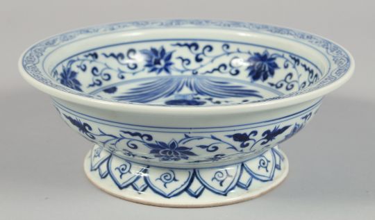A CHINESE BLUE AND WHITE PORCELAIN BOWL, decorated with a large fish and foliate motifs, the base with mythological beast and inscription. 21.5cm diameter