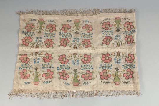 AN 18TH CENTURY TURKISH OTTOMAN EMBROIDERED TEXTILE, embroidered with floral motifs, 136cm x 44cm.