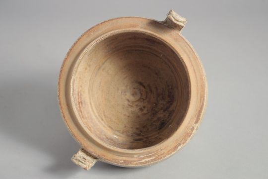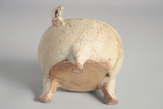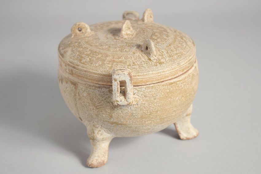 A CHINESE EARTHENWARE TRIPOD CENSER AND COVER, 14cm high.