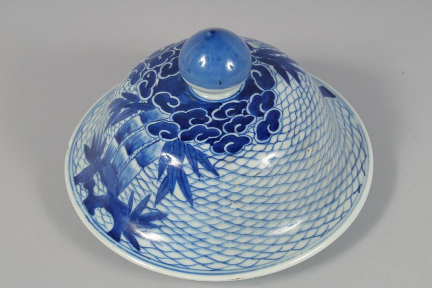 A VERY LARGE CHINESE BLUE AND WHITE PORCELAIN URN AND COVER painted with tigers against a fish scale background. 65cm high overall