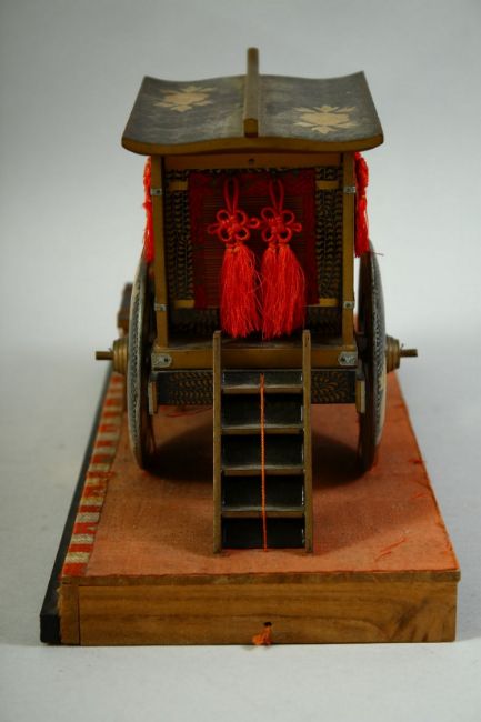 A JAPANESE LACQUER HINA DOLL OXEN AND CARRIAGE, 31.5cm long.