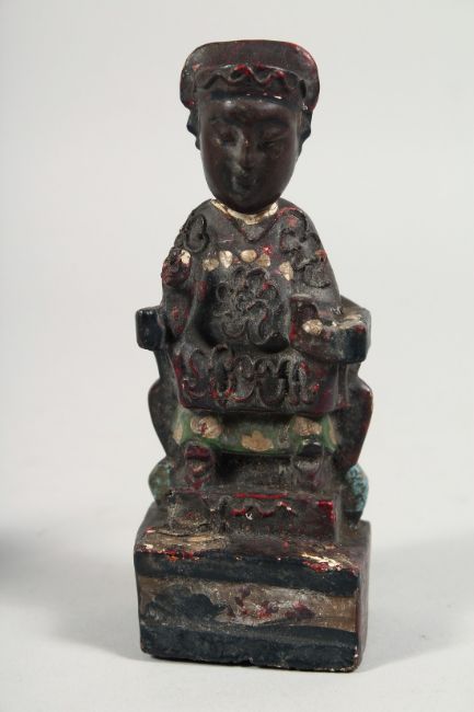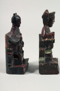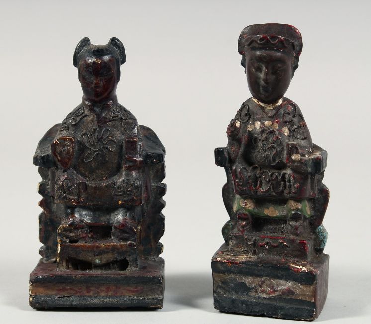 TWO CHINESE CARVED AND LACQUERED WOOD ANCESTOR FIGURES, 14cm and 13.5cm high, (2).
