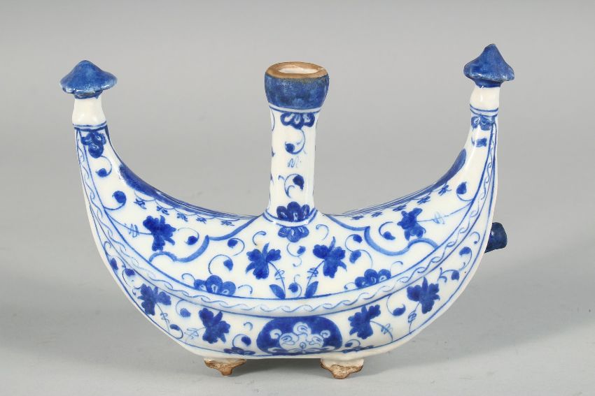 A TURKISH IZNIK GLAZED POTTERY WATER FLASK painted with foliate decoration, 22cm wide