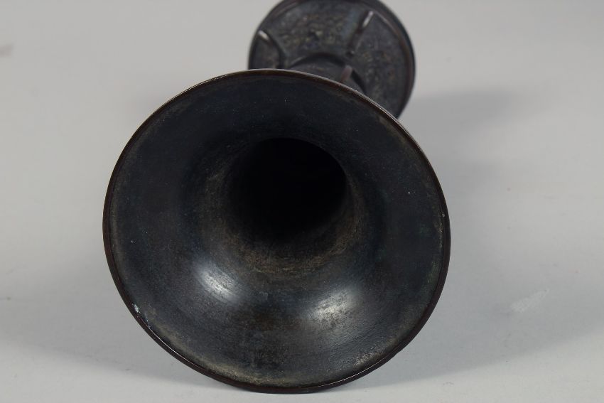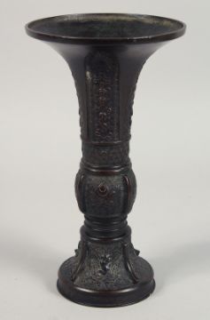 A CHINESE ARCHAIC STYLE BRONZE GU VASE, 25cm high.