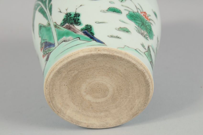 A CHINESE FAMILLE VERTE PORCELAIN JAR, painted with figures by water and lilies, 15.5cm high.