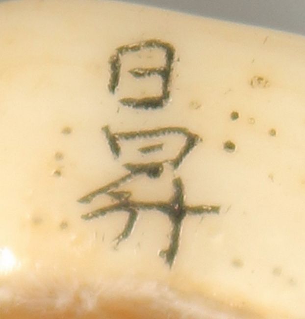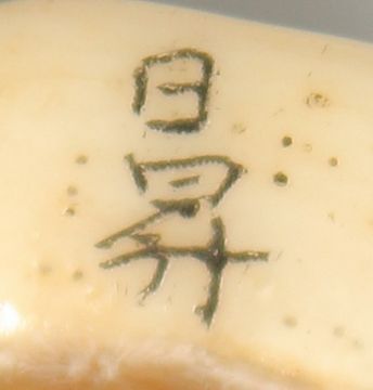 A CARVED BONE NETSUKE.