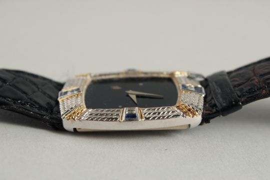 A GENTLEMAN'S 18K WHITE GOLD SAPPHIRE SET WRISTWATCH with leather strap. No. 1631 185 0.750