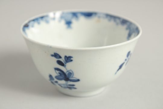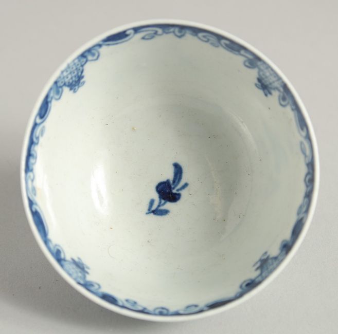 AN 18TH CENTURY WORCESTER TEA BOWL AND SAUCER painted with an early version on the Mansfield pattern, the tea bowl with inverted rim, both with work man's marks.