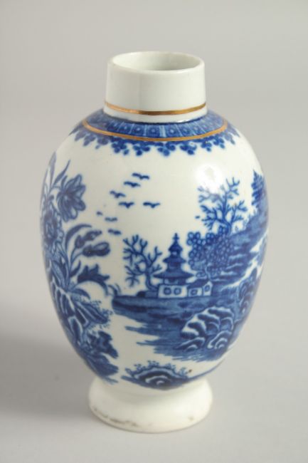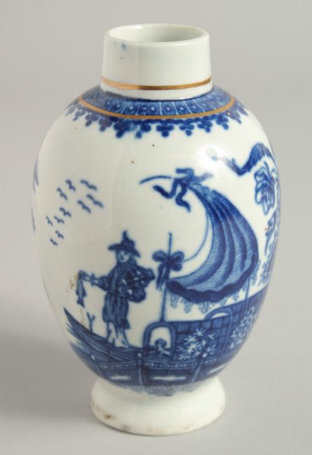 AN 18TH CENTURY WORCESTER TEA CANISTER printed with the Fisherman pattern.