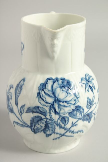 AN 18TH CENTURY WORCESTER CABBAGE LEAF MASK printed with the Thorny Rose pattern, which is normally only found on mugs.