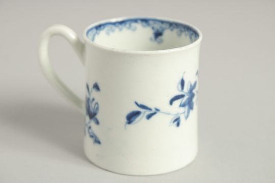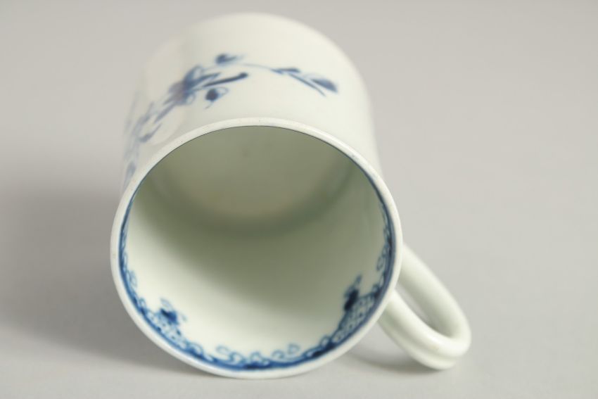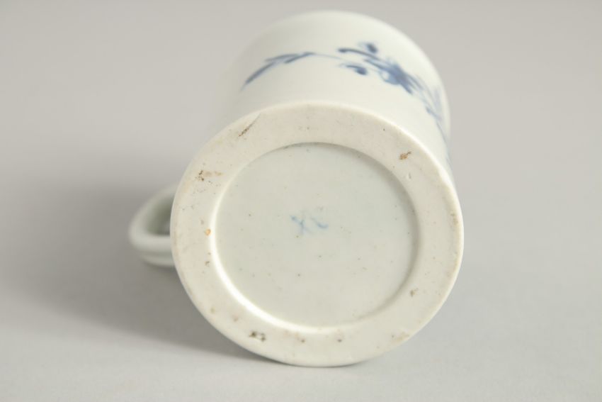 AN 18TH CENTURY WORCESTER EARLY COFFEE CAN of waisted cylindrical shape painted with the Mansfield pattern.