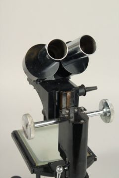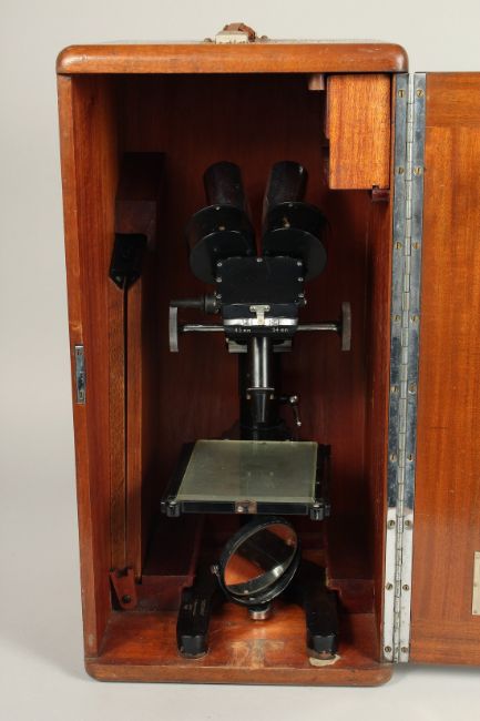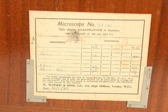 A DOUBLE BLACK PAINTED MICROSCOPE, W. WATSON & SONS LTD. 25 -5 - 49.