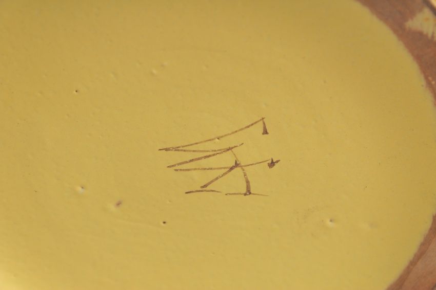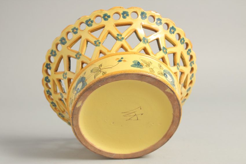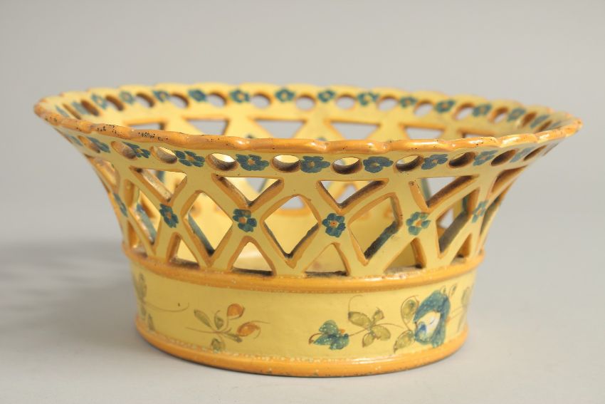 A CONTINENTAL YELLOW GROUP PIERCED CIRCULAR BASKET painted with flowers.