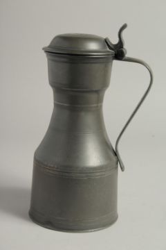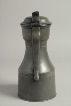 AN 18TH CENTURY PEWTER TAPPET HEN AND COVER.
