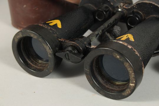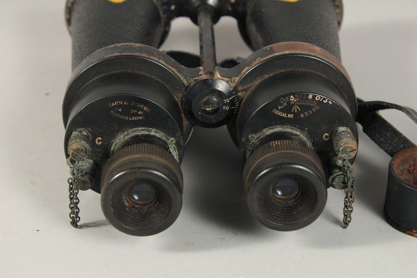 A BARR & STROUD of GLASGOW LONDON NAVAL BINOCULARS, with leather case.